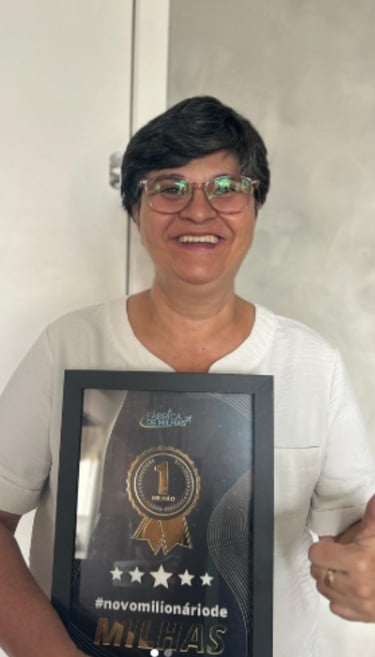 Com mais de 3 milhões de milhas acumuladas aplicando estratégias inteligentes de gestão, Elaine transformou a própria experiência em um método prático que já ajudou diversas pessoas a economizar de verdade em suas viagens.